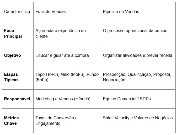 Se você não distingue os dois, sua equipe provavelmente está batendo cabeça. Enquanto o funil foca no comportamento do cliente, o pipeline é o seu mapa de guerra interno.